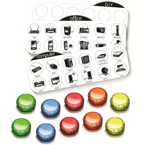 - Includes 10 reusable multi-colored identifiers, 24 ready-to-go punch out icons and 12 do-it-yourself punch out icons